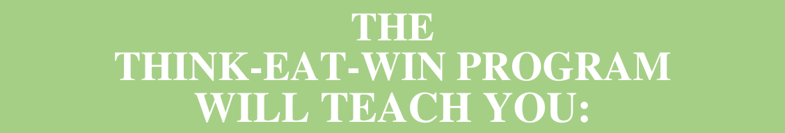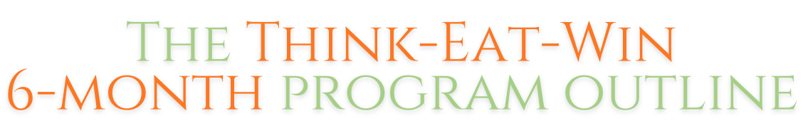 In the Think-Eat-Win coaching program, motivated and committed women will transform their eating, their bodies, and their mindset permanently. As you develop the awareness, skills, and tools for ending emotional eating and self-sabotage, you'll learn what you need to EAT, KNOW, and DO to actually solve overeating problems at their source. We will apply concepts that expose the real reasons that diets and meal plans have not worked for you long-term (and never will).